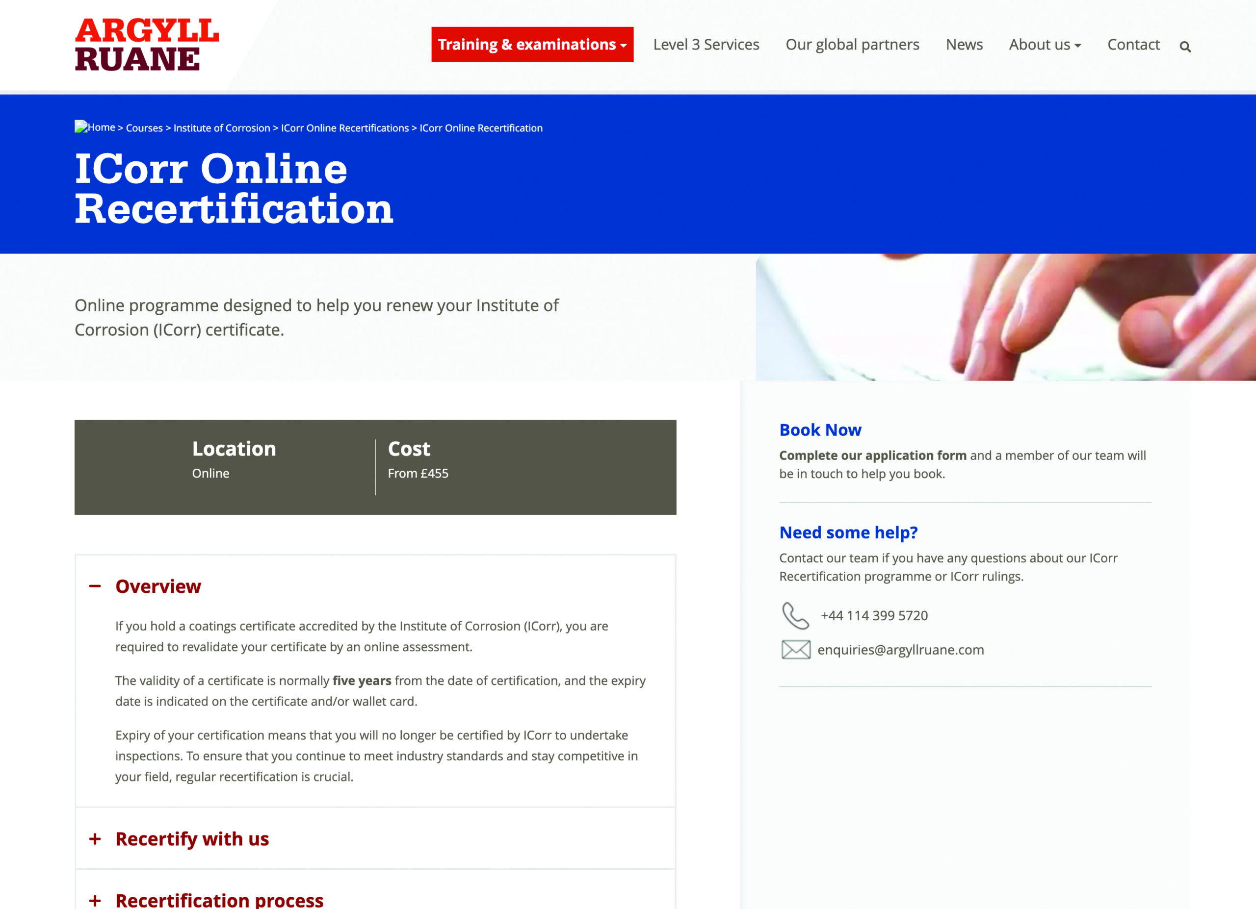 - Knowledge of Institute of Corrosion training activities (or other established Corrosion Training provider)