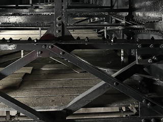 There are 6,300 steel sections under the bridge, many of which were corroded, but now behind the extensive scaffolding have been repaired or replaced, approximately 2,000 components in total at a cost of £10m, due to complex logistics.