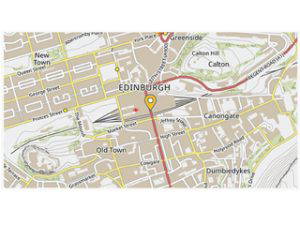 Map: Location of North Bridge by Edinburgh Waverley Railway Station.
