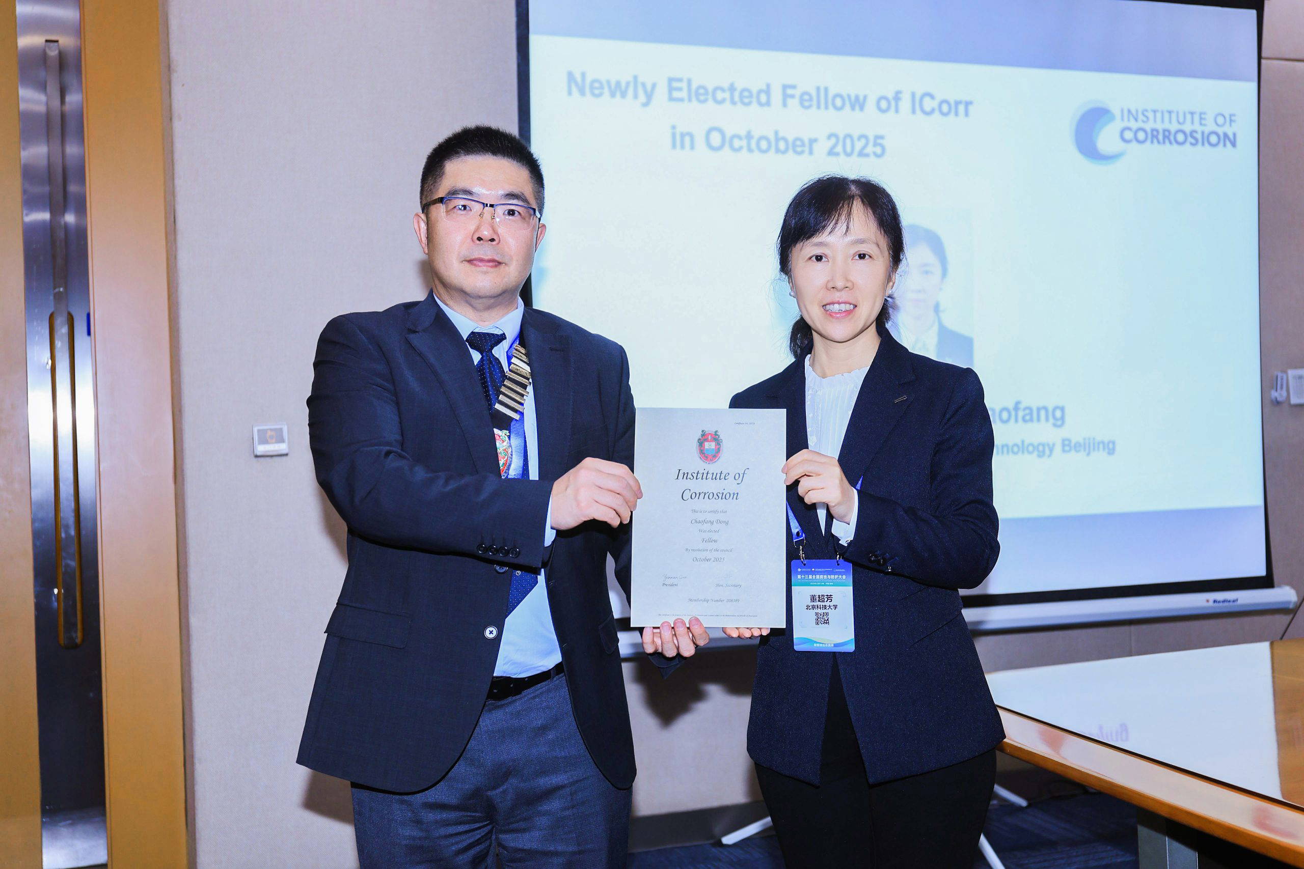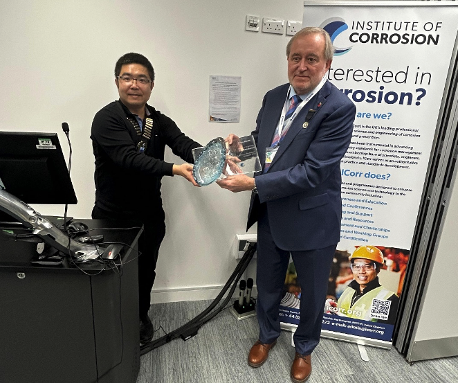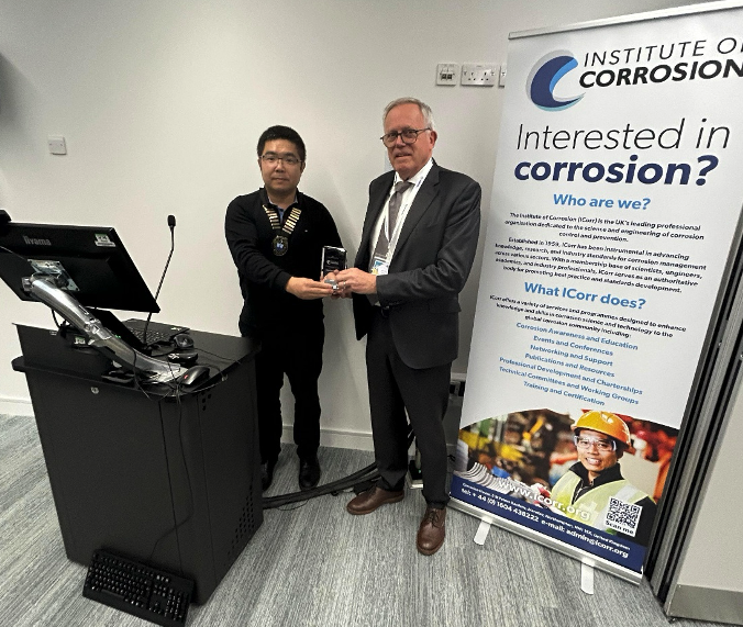 Photo: ICorr President, Dr Yunnan Gao (Left) Presenting H.G. Cole Award to Brian Wyatt (Right) at the ICorr AGM on 4th November 2025.