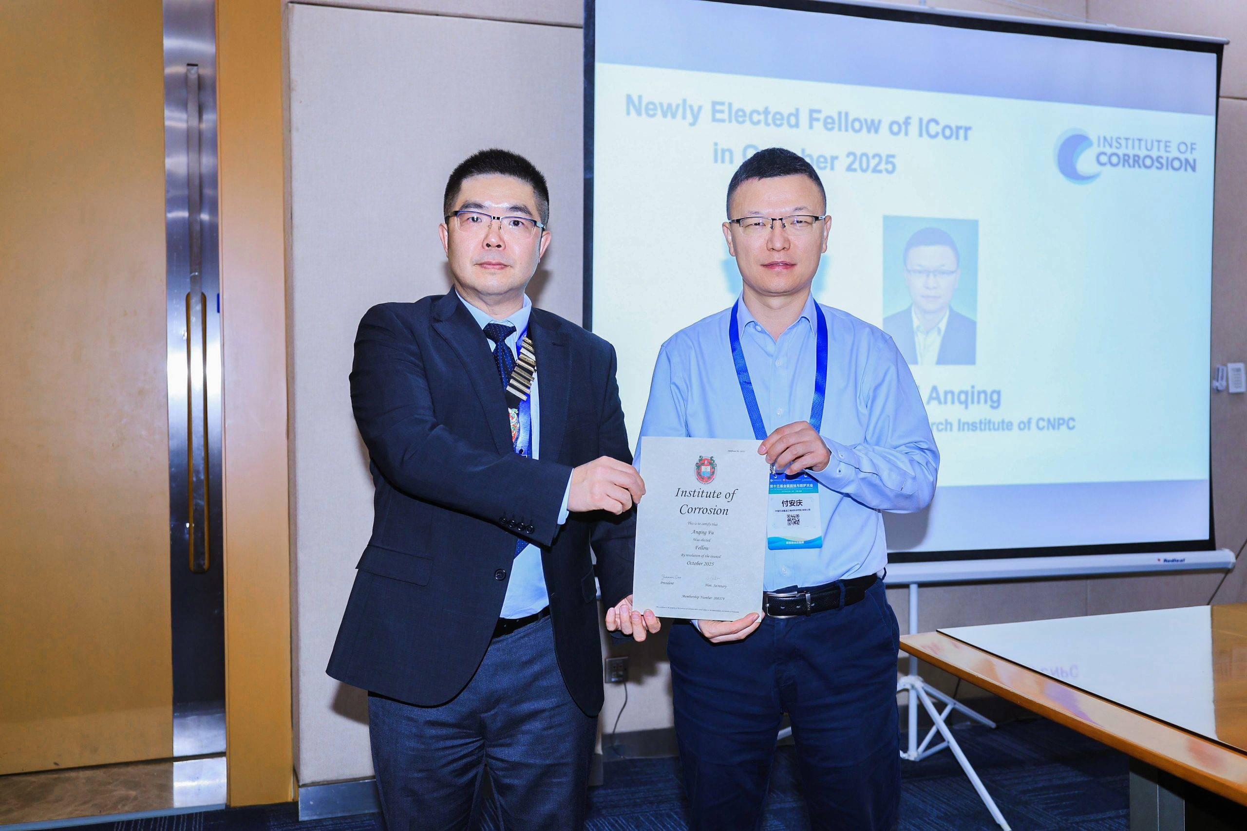 Photo: ICorr President, Dr Yunnan Gao (Left) Presenting 2025 Paul McIntyre Award to Professor Damien Feron (Right) at the ICorr AGM on 4th November 2025.