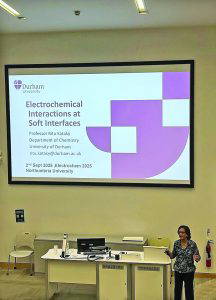 Anjali John (University of Warwick) gave a talk on the initial stages of anodic corrosion of boron-doped diamond electrodes. Using advanced in situ and ex situ techniques, her research provided a rare glimpse into early corrosion mechanisms under extreme electrochemical oxidation conditions, critical for improving electrode durability in advanced oxidation processes.